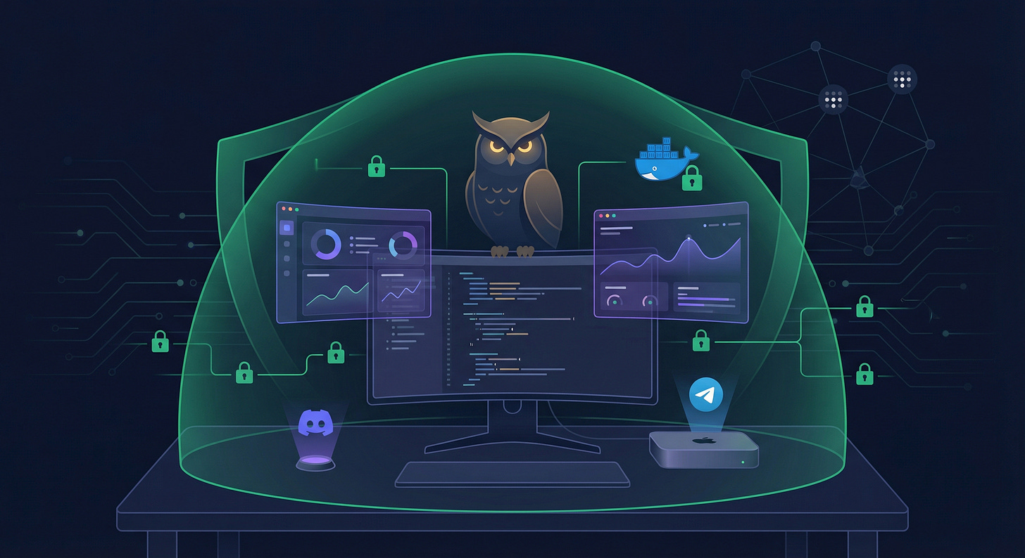 Every time the AI reads external content (URLs, emails, Facebook comments for the dashboard), there’s a prompt injection risk. The subagent architecture helps — the Reader Agent processes untrusted content in a Docker sandbox with no access to message, gateway, or cron. But the summarized output still flows back to the main agent.