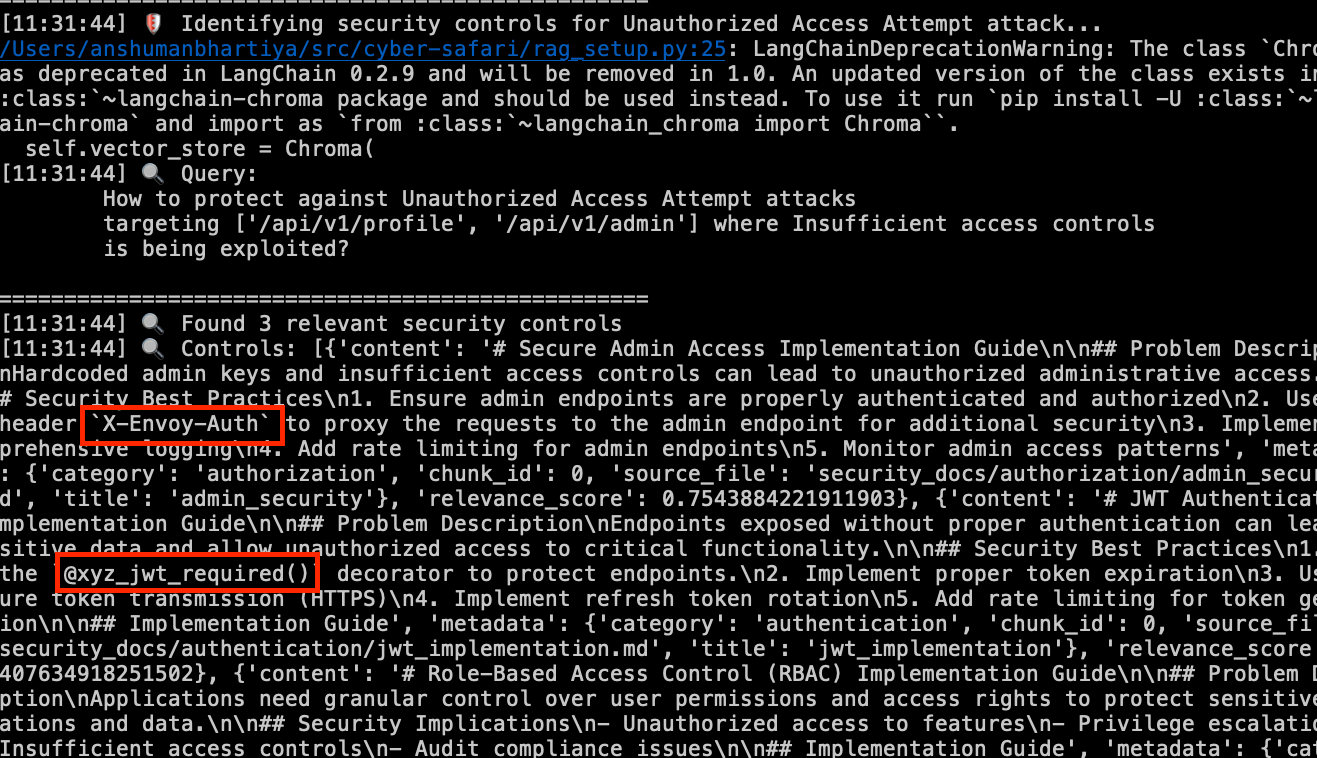Identifying security controls - The step to identify security controls from the vector DB is a very basic one demonstrated here. This could be improved a lot by gathering additional context from the organization’s risk framework, data classification, any other compliance requirements before the agent can identify the relevant security controls. For example, if this particular application could be put behind a WAF more easily as compared to fixing the code (mitigation as opposed to remediation), and if an agent could gather the right organizational context to be able to make that decision, it would solve one of the biggest challenges in the vulnerability management space, where context is key but is often missing. I call this as being